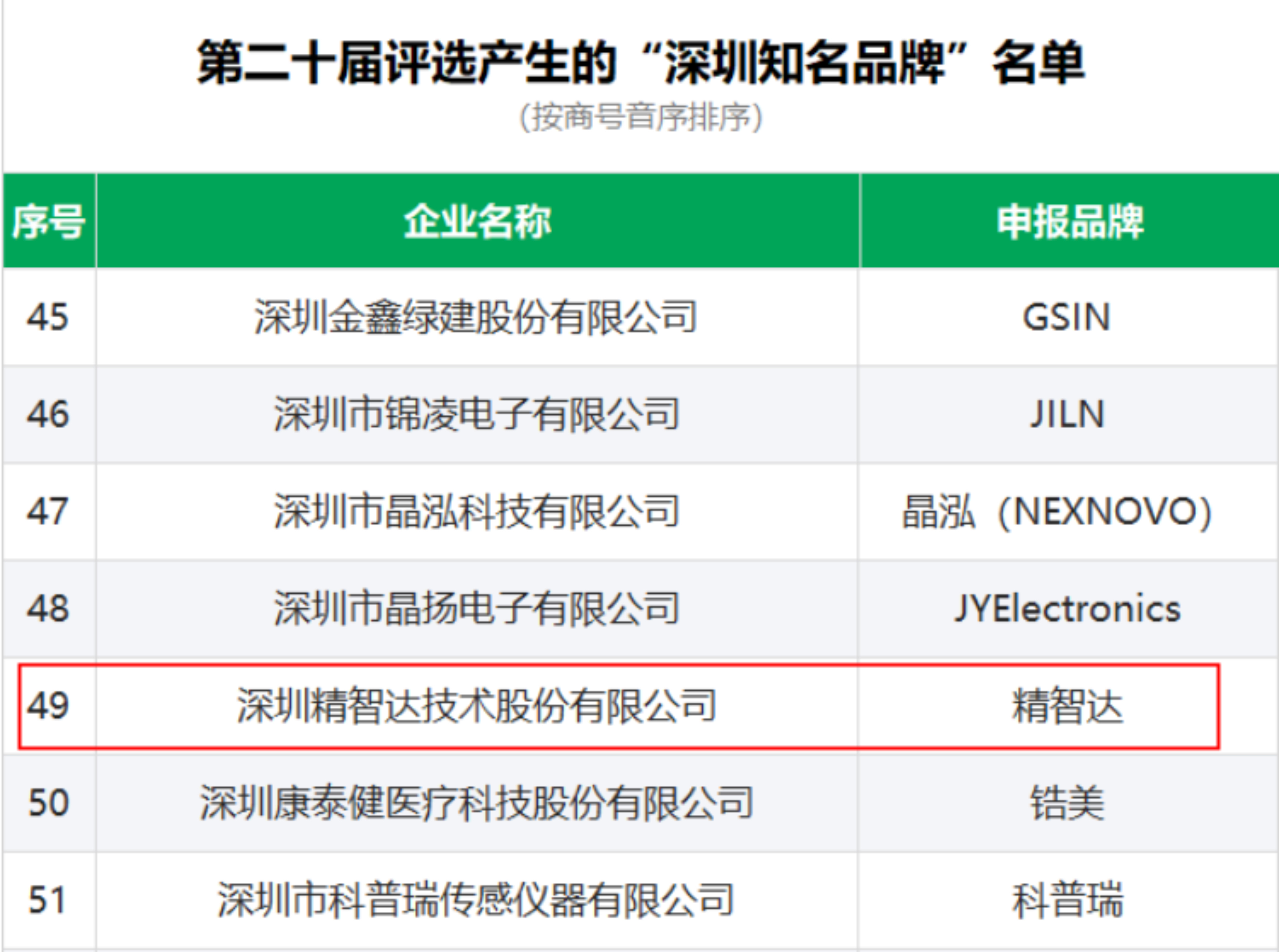 二、第二十屆“深圳知名品牌”評選結果: